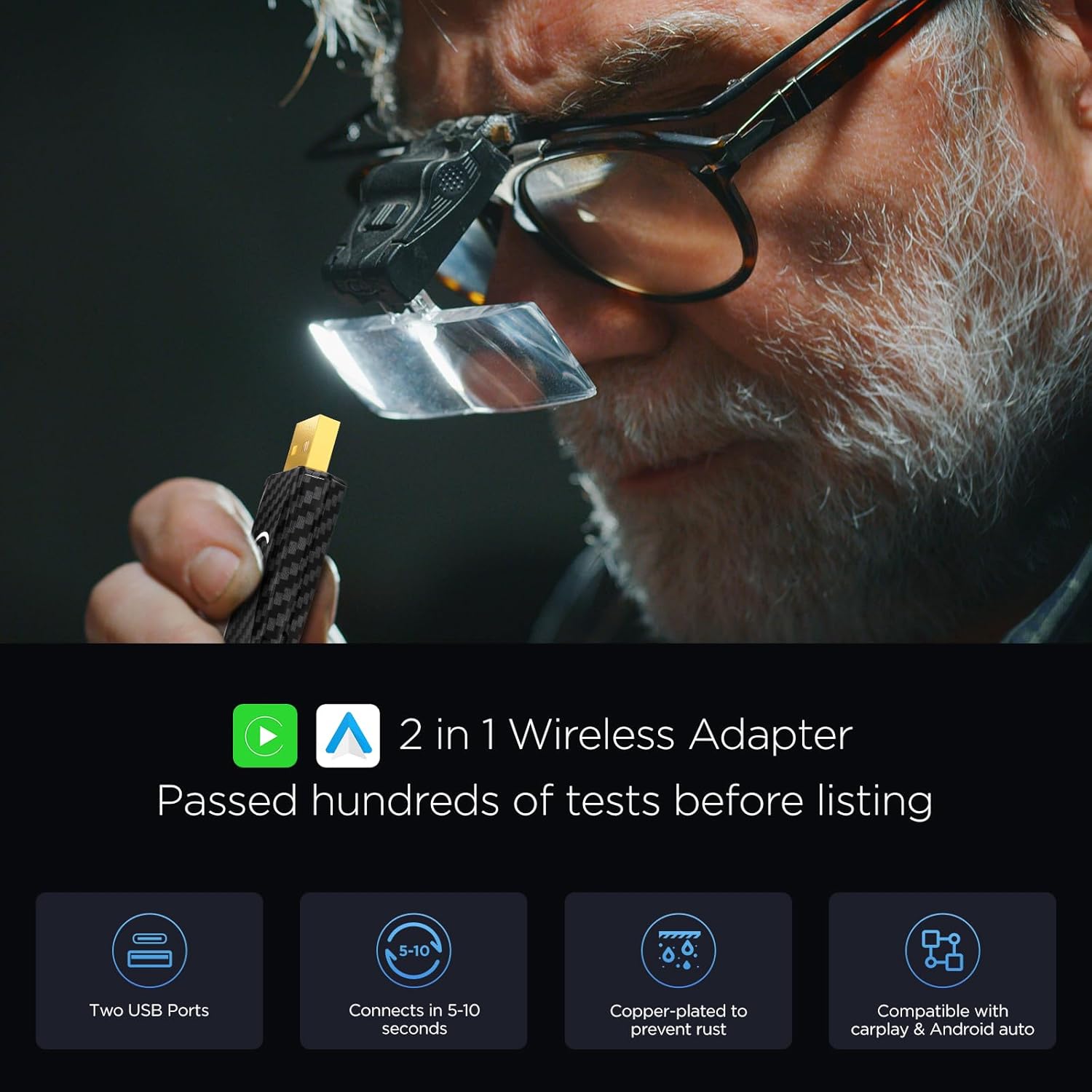 With a pure copper USB and gold plating, the adapter offers excellent connectivity and corrosion resistance. Enjoy a stable, fast connection for your wireless CarPlay/Android Auto needs every time you drive.